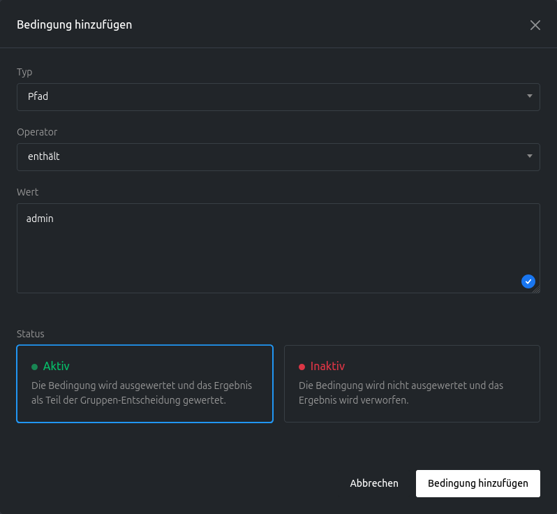 Aktuell werden folgende Bedingungs-Typen unterstützt: