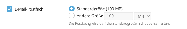 Um einem Postfach mehr oder weniger Speicher zuzuweisen, können Sie die maximale Größe des Postfachs in den Einstellungen des Postfachs erhöhen oder begrenzen.
