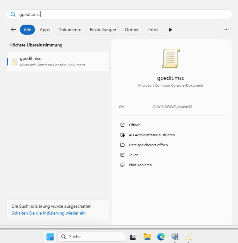 Öffnen Sie hierzu den Gruppenrichtlinien-Editor: