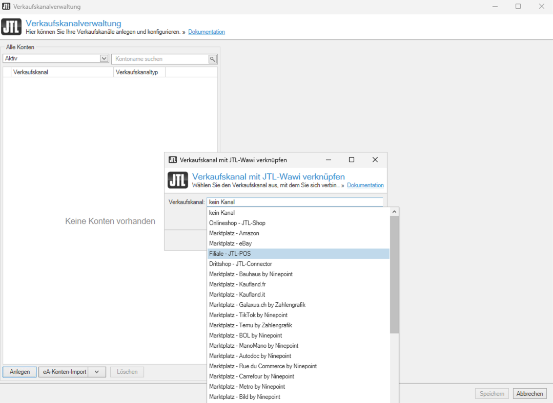 Öffnen Sie nach dem Speichern in der obersten Menüleiste Plattformen → Verkaufskanäle und