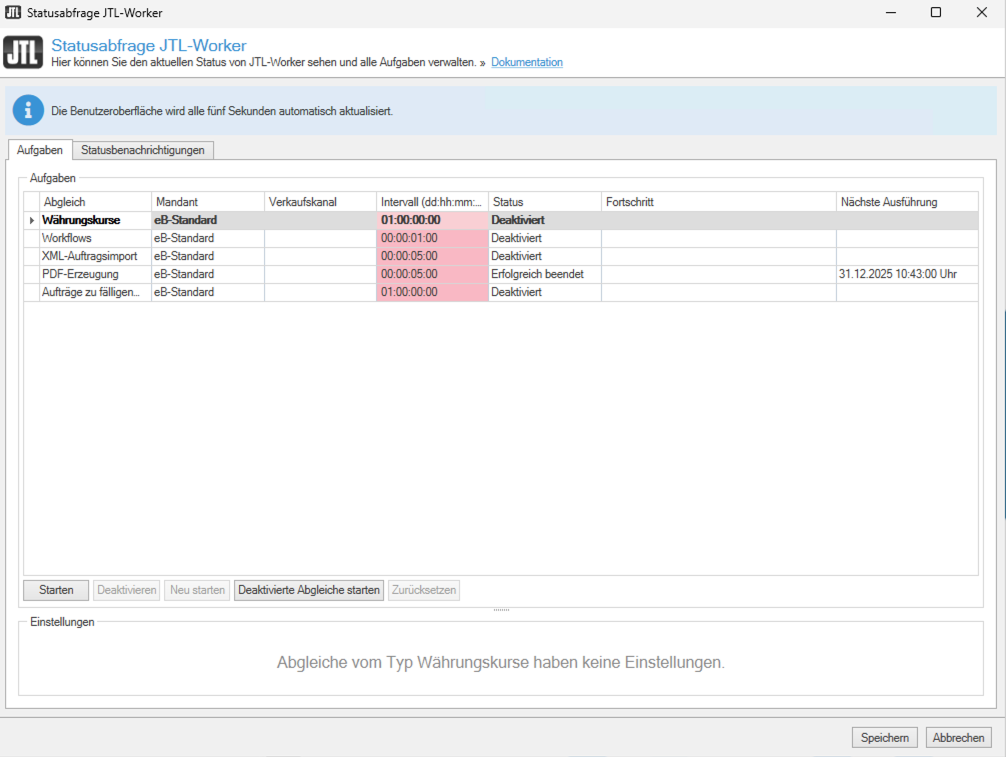 Über die obere Menüleiste Admin → JTL-Worker-Status können Sie jetzt einsehen, ob der JTL-Worker korrekt arbeitet: