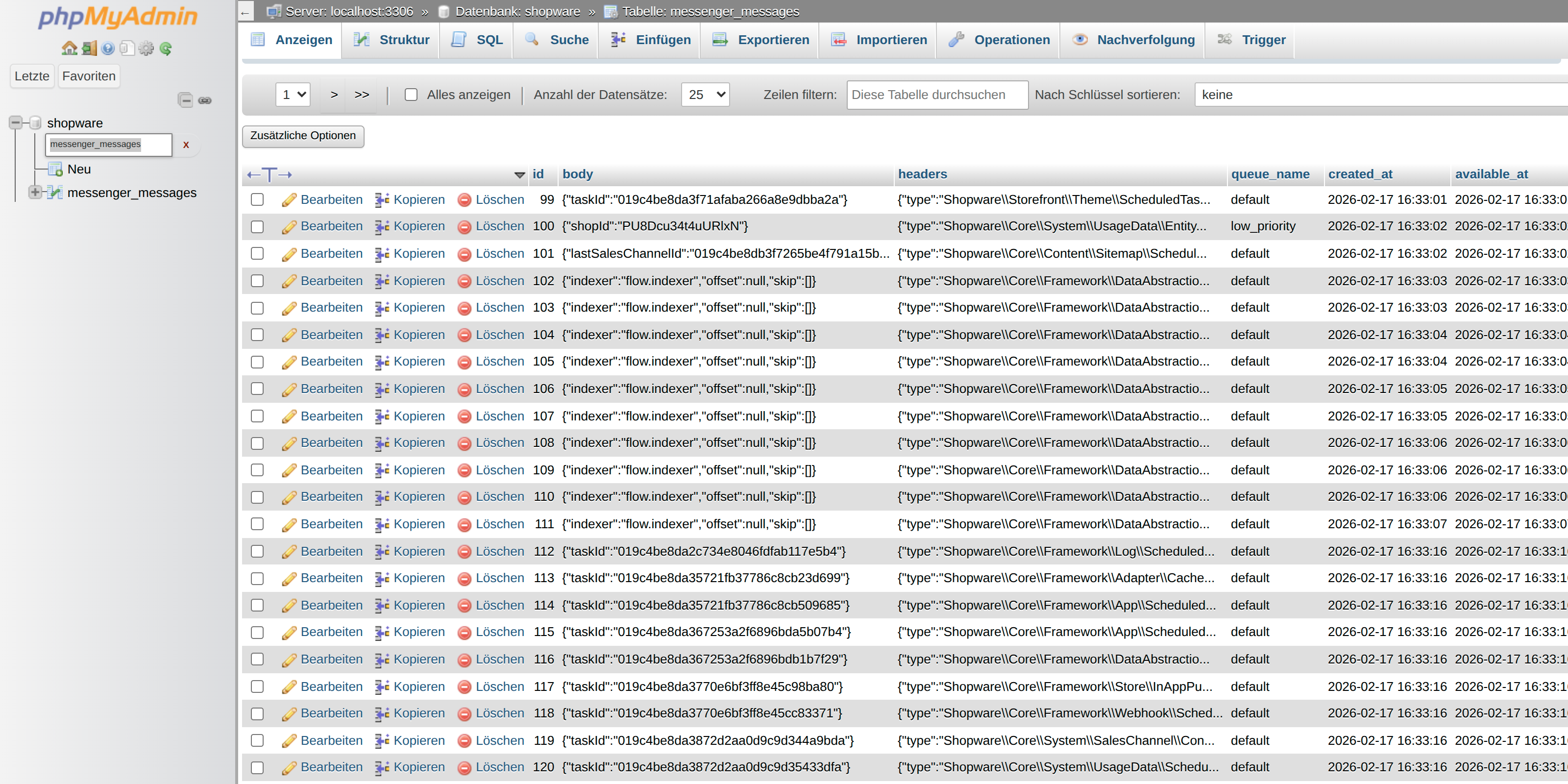 To answer this question, we recommend taking a look at the Shopware database table messenger_messages.